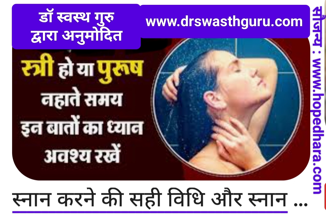 दौड़कर आने पर, पसीना निकलने पर तथा भोजन के तुरंत पहले तथा बाद में स्नान नहीं करना चाहिए । भोजन के तीन घंटे बाद स्नान कर सकते हैं ।